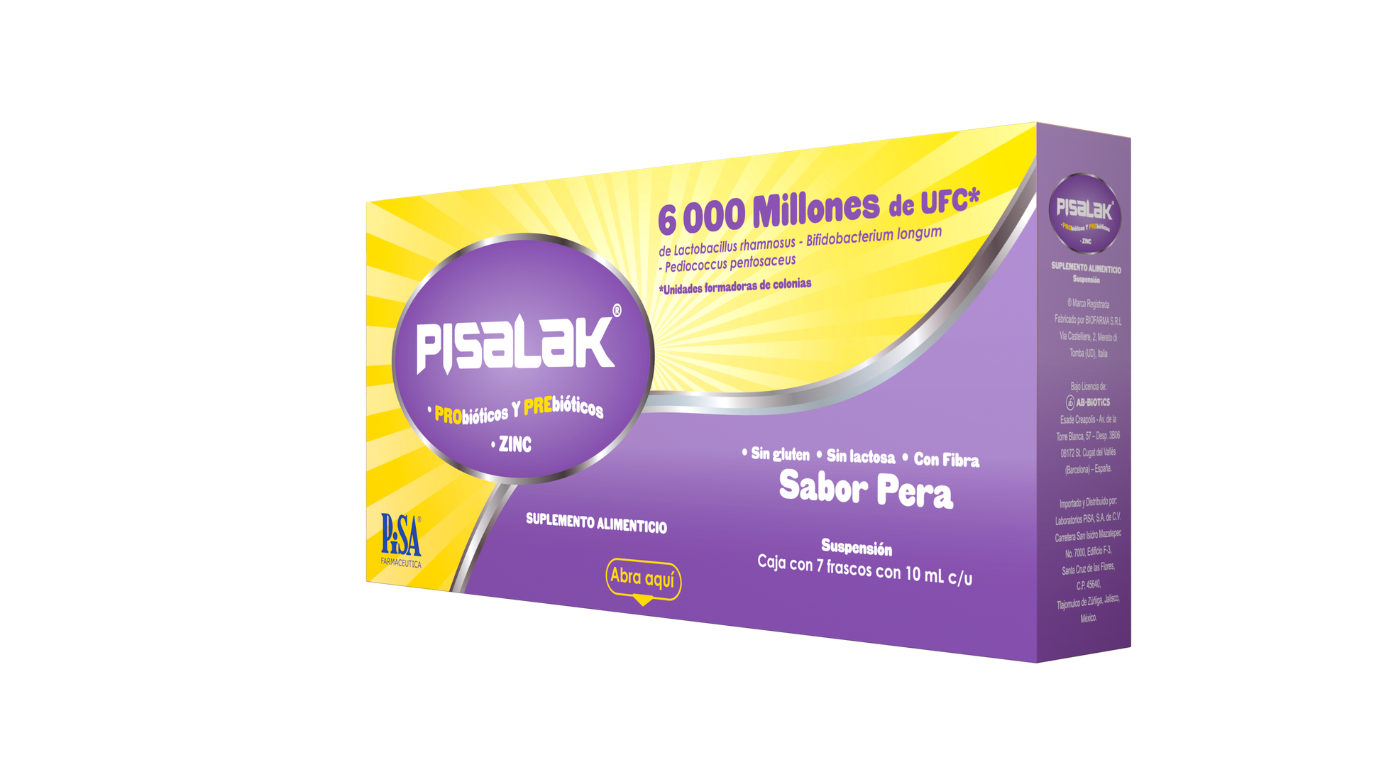 Pisalak es un suplemento alimenticio de alta potencia, desarrollado por Laboratorio Pisa, formulado con probióticos y zinc. Su principal función es regenerar la flora intestinal alterada por episodios de diarrea, infecciones o tratamientos con antibióticos. Gracias a sus cepas especializadas y su contenido de zinc, restaura el equilibrio digestivo, mejora la absorción de nutrientes y fortalece el sistema inmunológico.
